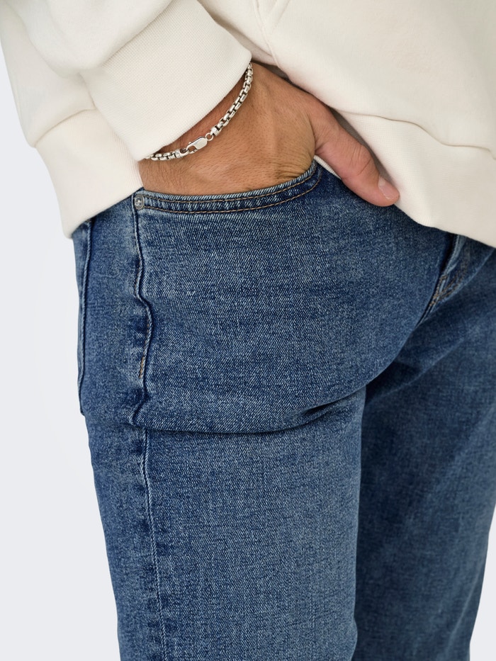 - Εφαρμοστό : Το LOOM είναι στενό και ίσιο στα πόδια με στενό άνοιγμα ποδιών. Το τζιν είναι χαμηλοκάβαλο και είναι φτιαγμένο από ελαστικό denim, που το κάνει ευκολοφόρετο