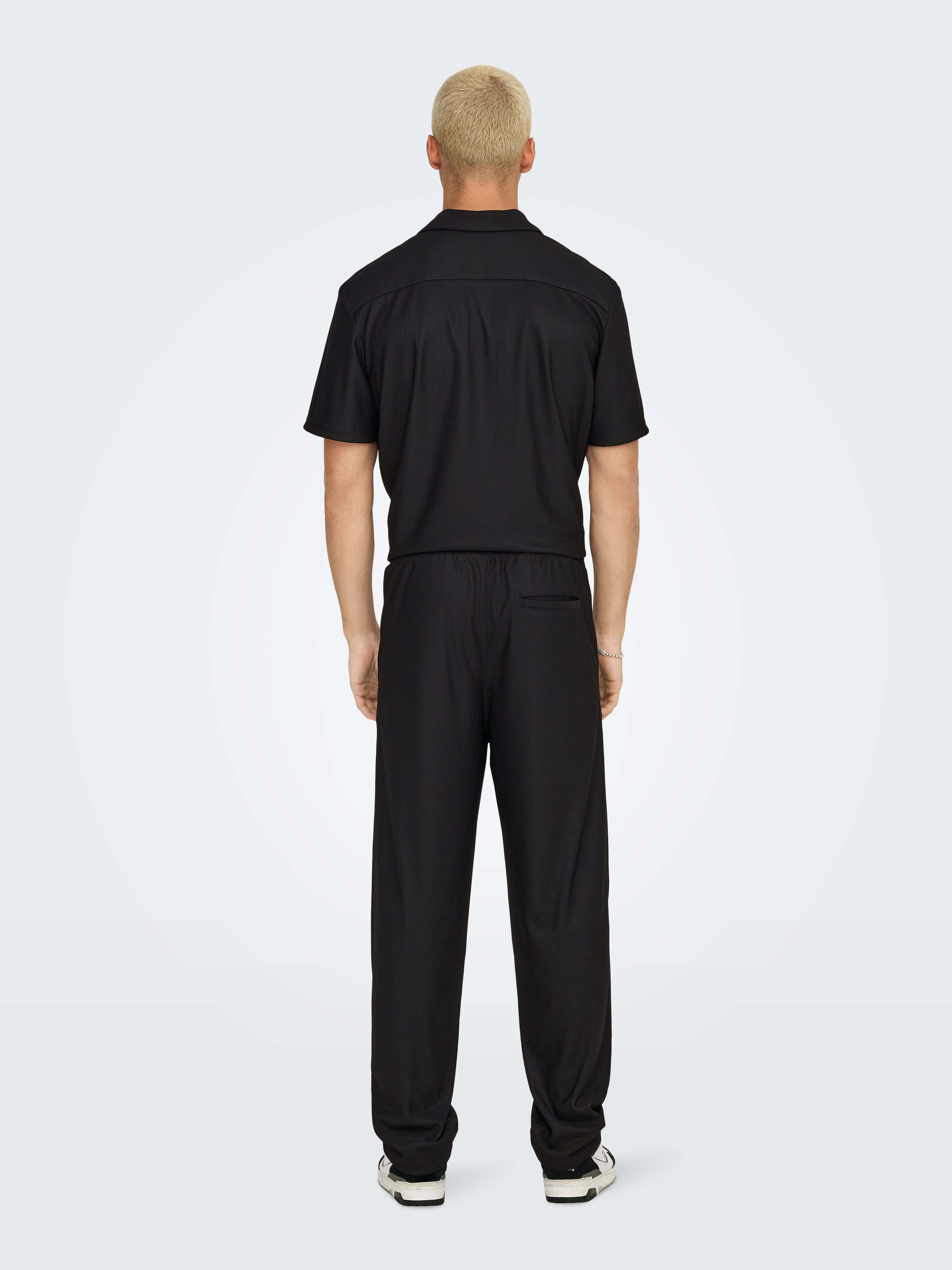 Find the perfect pair of trousers and create a cool looking outfit with a T-shirt and your favourite layering piece - suitable for both work, festive occasions and weekends at home.