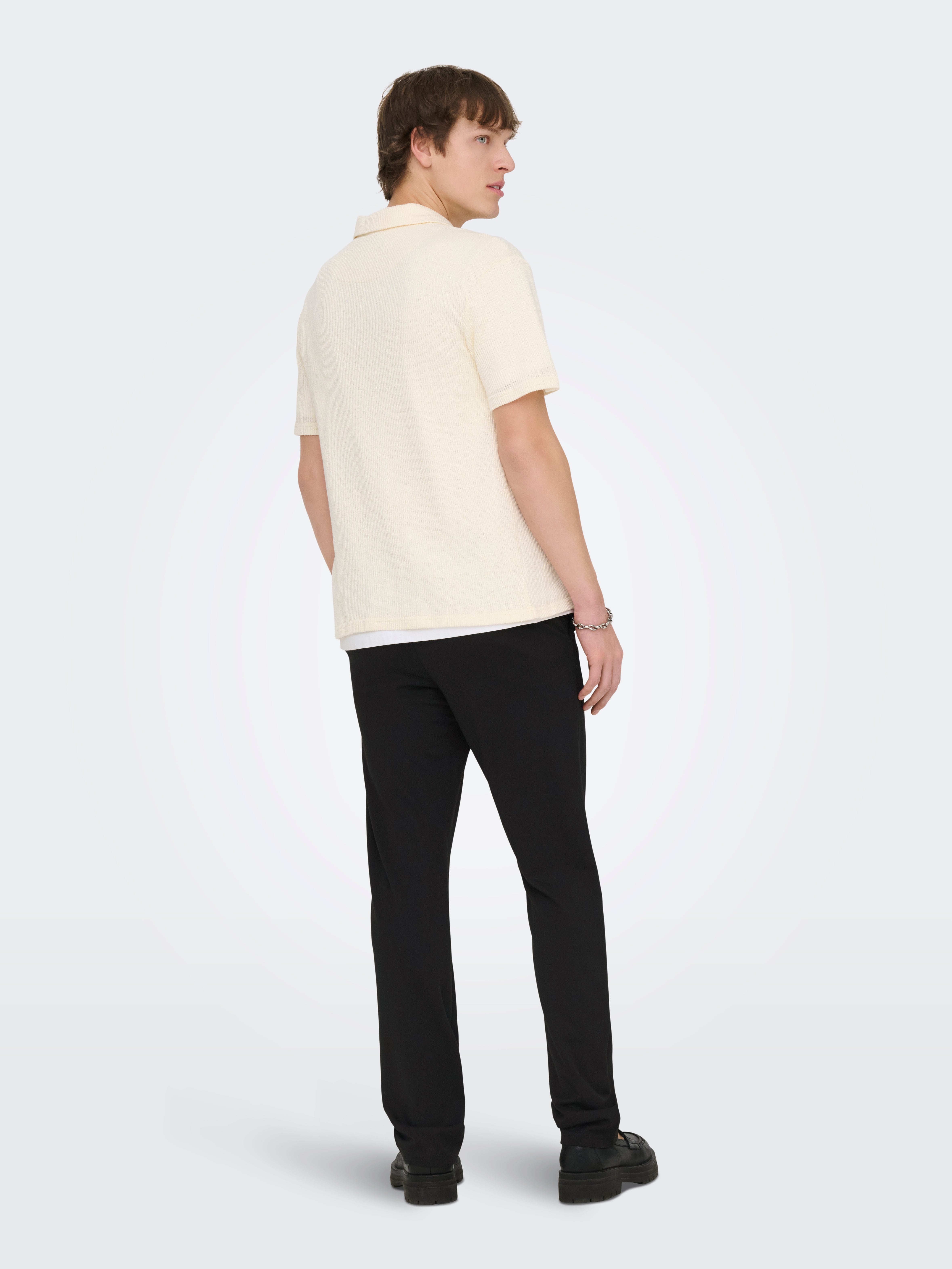 Find the perfect pair of trousers and create a cool looking outfit with a T-shirt and your favourite layering piece - suitable for both work, festive occasions and weekends at home.