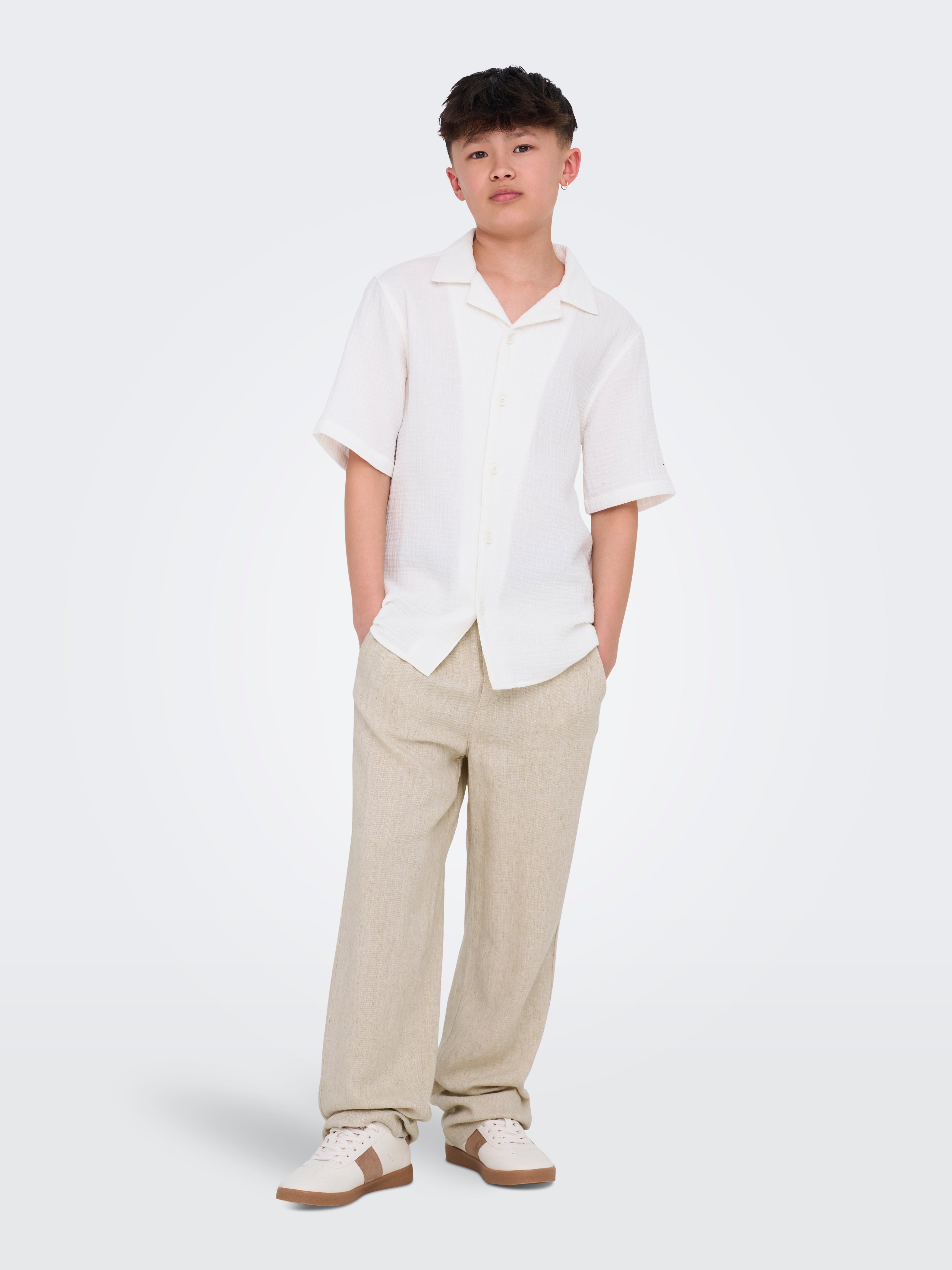 ONLY & SONS JUNIOR -housut ovat sekä mukavat että trendikkäät! Rennoista chinoista reisitaskuhousuihin ne sopivat täydellisesti aktiivisille pojille, jotka haluavat urheilullisen ilmeen. Katutyylin inspiroima ja toiminnallisuuteen keskittynyt. Ne ovat ihanteellisia sekä leikkiin että jokapäiväiseen käyttöön. Yhdistä ne T-paidan tai collegepaidan kanssa saadaksesi ilmeen, joka on sekä rento että viileä.