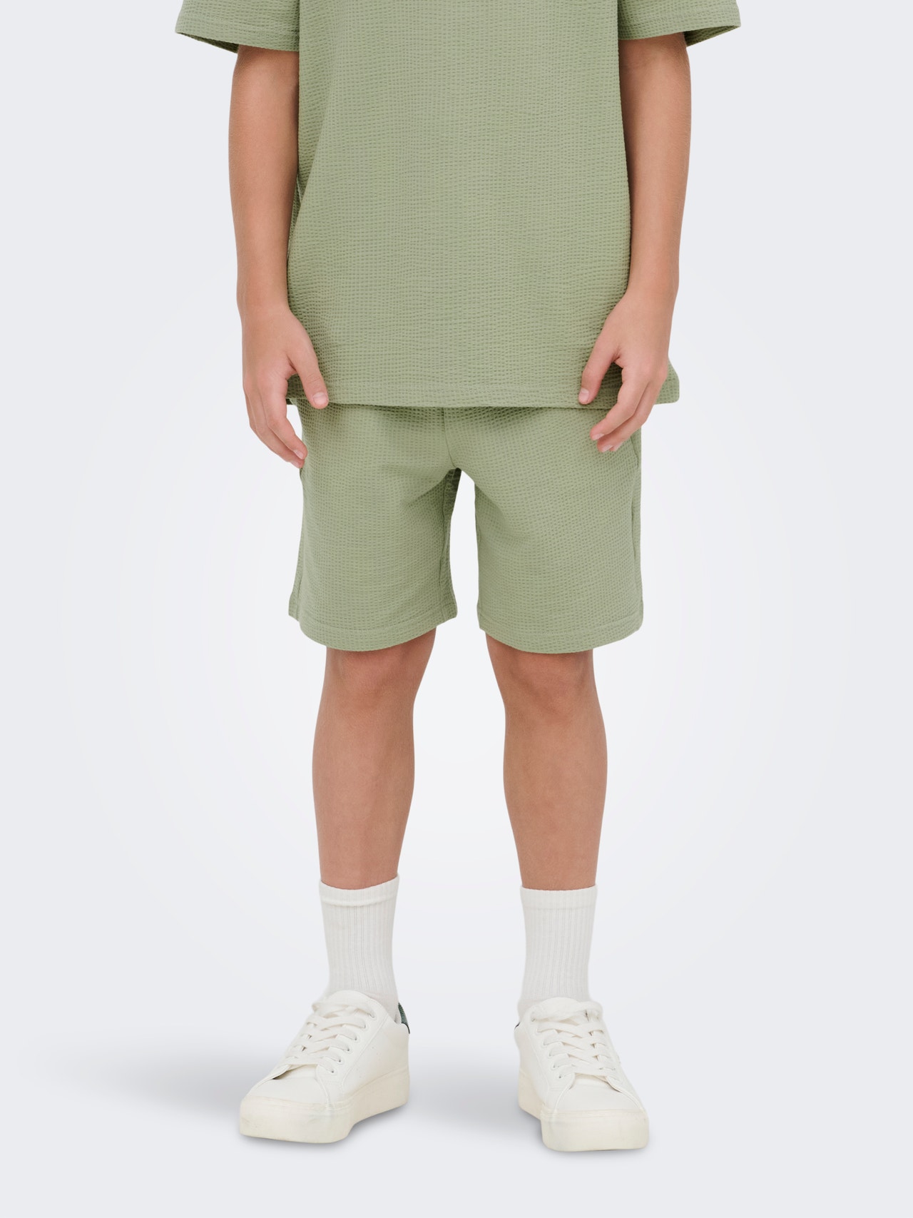 Valmistaudu aurinkoisiin päiviin ONLY & SONS JUNIOR -shortseilla! Värikkäät ja urheilulliset ne sopivat täydellisesti lomailuun, leikkiin ja rentoutumiseen. Suunniteltu pojille, jotka haluavat pysyä mukavana ja tyylikkäänä koko kesän. Yhdistä ne T-paidan tai collegepaidan kanssa saadaksesi siistin ja rennon ilmeen.