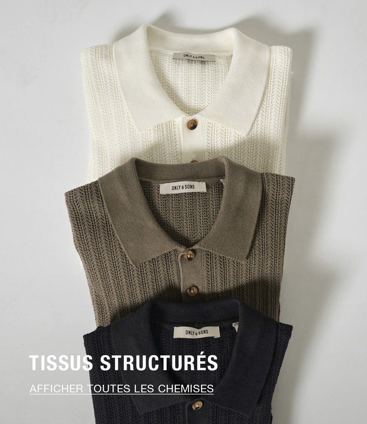 Nous sommes une marque de mode jeune et ambitieuse avec le denim au cœur de notre activité. Nous savons que les hommes élégants recherchent des vêtements d'excellente qualité à un prix avantageux, nous passons donc des jours et des nuits à concevoir des pièces sans effort qui répondront aux besoins des clients les plus exigeants. Que vous soyez à la recherche d'un jean skinny, d'un T-shirt oversize ou de la veste-chemise actuellement en vogue, vous les trouverez, et bien d'autres articles de mode incontournables, sur la boutique en ligne ONLY & SONS Belgique.