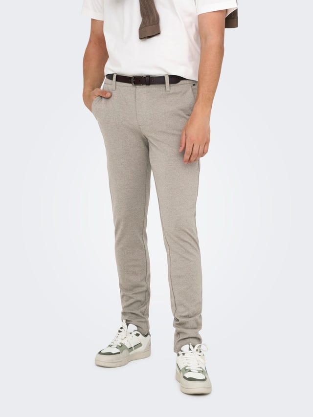 Porter un pantalon slim fit devient un jeu d’enfant quand la coupe est aussi réussie. Pour un look épuré et contemporain, associez-le à un T-shirt blanc impeccable et des baskets fraîches. Ajoutez une surchemise d’inspiration utilitaire ou un bomber léger pour une allure décontractée et assurée, qui ne cherche pas à se faire remarquer mais en dit long. Envie d’un style chic décontracté ? Essayez un modèle dans un ton neutre comme le beige ou le gris charbon, porté avec un pull fin et des bottines Chelsea en cuir. Pour les plus audacieux, osez une version cropped à motif ou à texture (pied-de-poule, rayures fines ou carreaux brossés). Complétez le look avec un T-shirt rentré et un blazer oversize pour une touche sans effort puisée dans le streetwear scandinave. Chez ONLY & SONS, nous pensons que les indispensables doivent faire bien plus que « simplement aller avec tout » : ils subliment le quotidien.