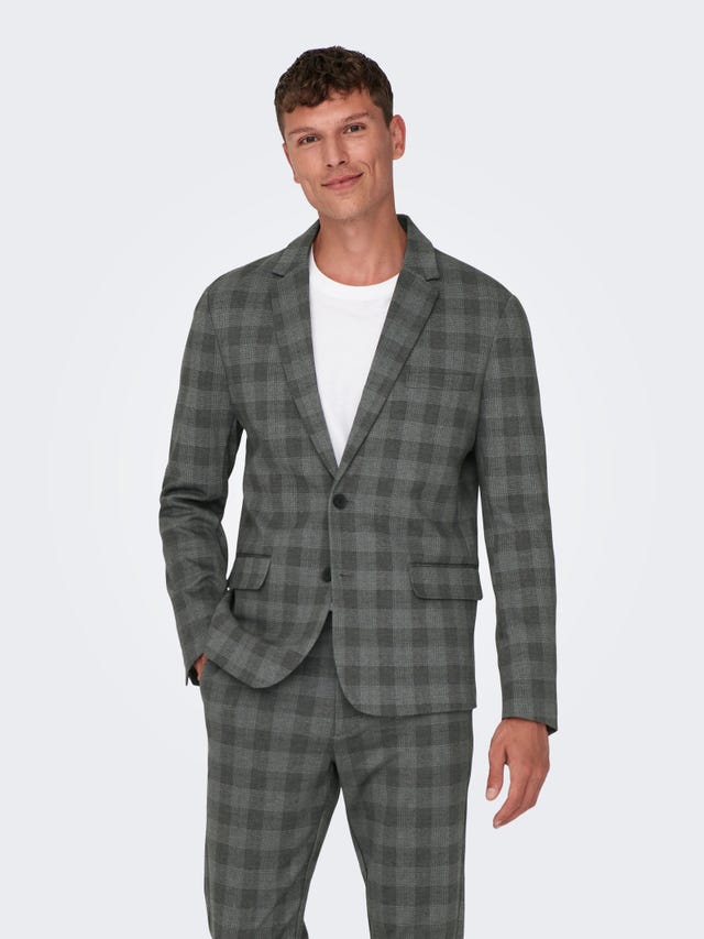 Ser du etter et klassisk klesplagg som får deg til å se sofistikert og stilig ut? Let ikke lenger! ONLY & SONS har en bred kolleksjon av blazere for menn, noe som betyr at du har mye å velge mellom. Kanskje en av våre basic sorte blazere er den riktige for deg? Det er absolutt et praktisk valg da det går med absolutt alt. Leter du etter noe