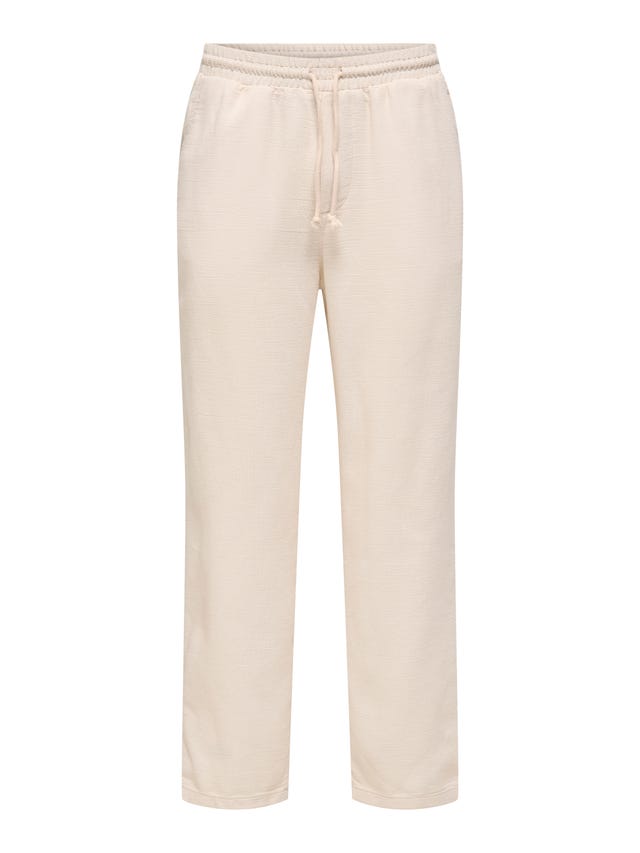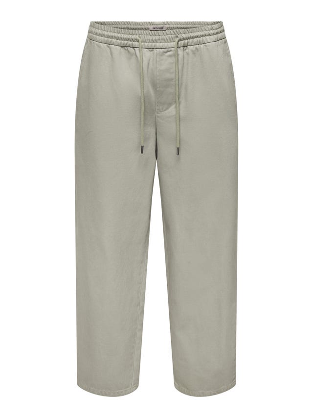 Het mooie van loose-fit herenbroeken is dat ze bij elk soort lichaam passen. Als je lang bent, geven ze jouw lange ledematen meer volume en vorm. Als je breed bent, vallen de broekspijpen losser en mooier om je benen. Als je smal gebouwd bent, geeft loose fit extra diepte en een relaxed randje dat mooi contrasteert met gestructureerde overhemden of jassen. De broeken van ONLY & SONS zijn zorgvuldig ontworpen en hebben een ongecompliceerde vibe. Elke broek ziet er verzorgd maar niet te formeel uit. We letten goed op de taillehoogte, lengte en materiaalsamenstelling. Onze loose fits flatteren alle lichaamstypes en bieden serieus comfort. Of je nu voor een cropped fit of een volledige lengte gaat, in onze collectie vind je broeken die met je mee bewegen. Als je jouw garderobe meer ademruimte wilt geven, zijn loose-fit herenbroeken de beste manier. Bij ONLY & SONS combineren we moderne vormen met tijdloze tailoring om kleding te maken die trends overstijgt. Betaalbaar, draagbaar en gemaakt om te bewegen. We bieden mode voor mannen die de trend zetten in plaats van volgen. Bij de ONLY & SONS collectie loose-fit broeken voor heren en ontdek een stijl die stoer, relaxed en helemaal van jou is.